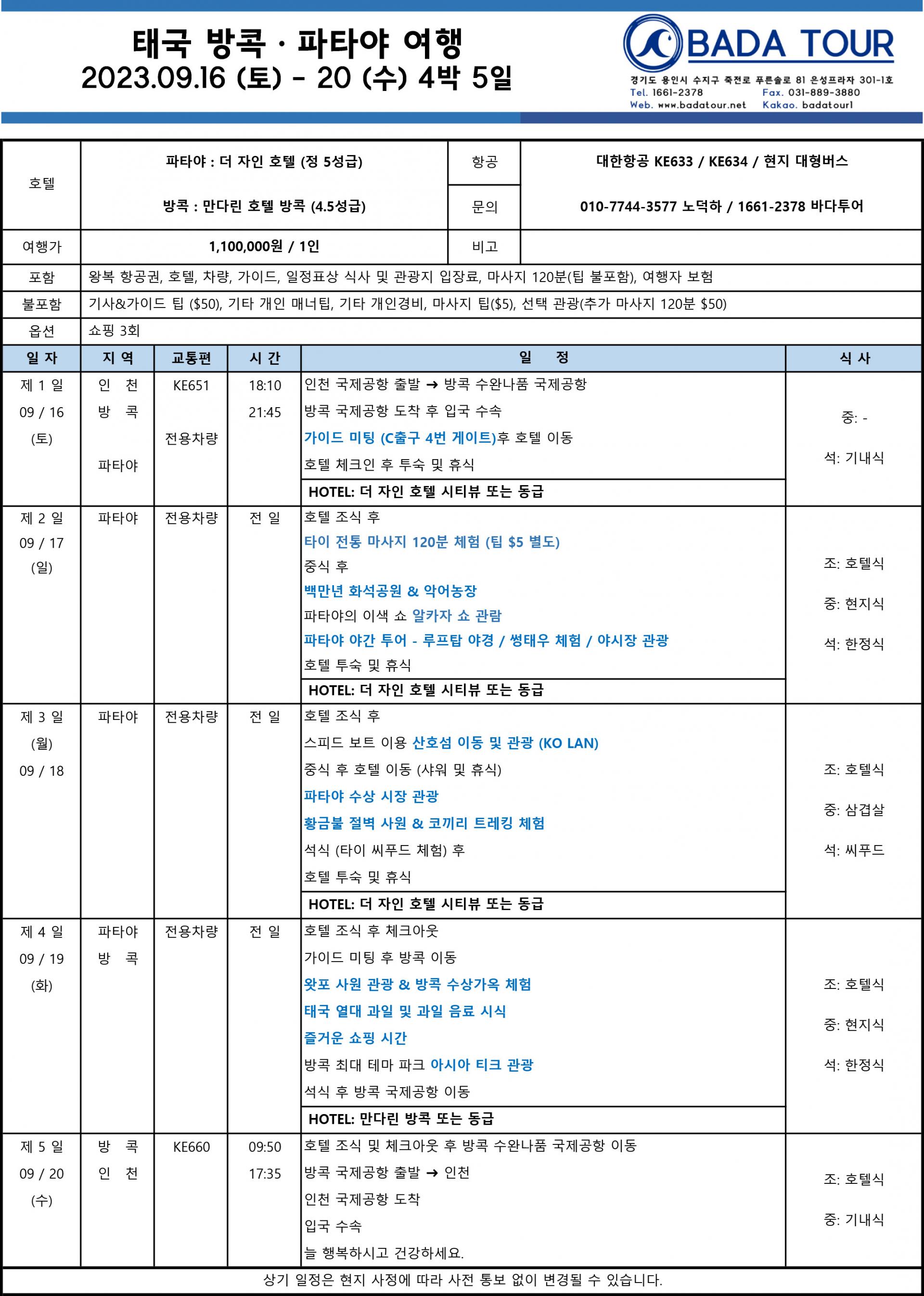 - 해당 날짜의 항공은 단체항공권 기준이므로 항공사 마일리지 적립은 불가합니다.